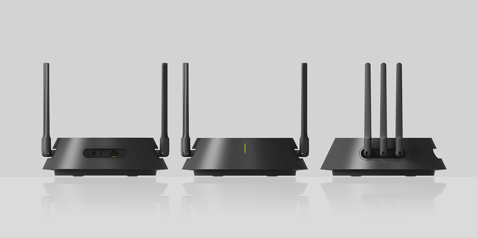 隐藏式的底座设计,在视觉上减薄产品的物理厚度。接口区和天线口运用统一造型元素,保证产品造型的整体性,磨砂质感与顶面高亮面的对比,体现品质与科技感。